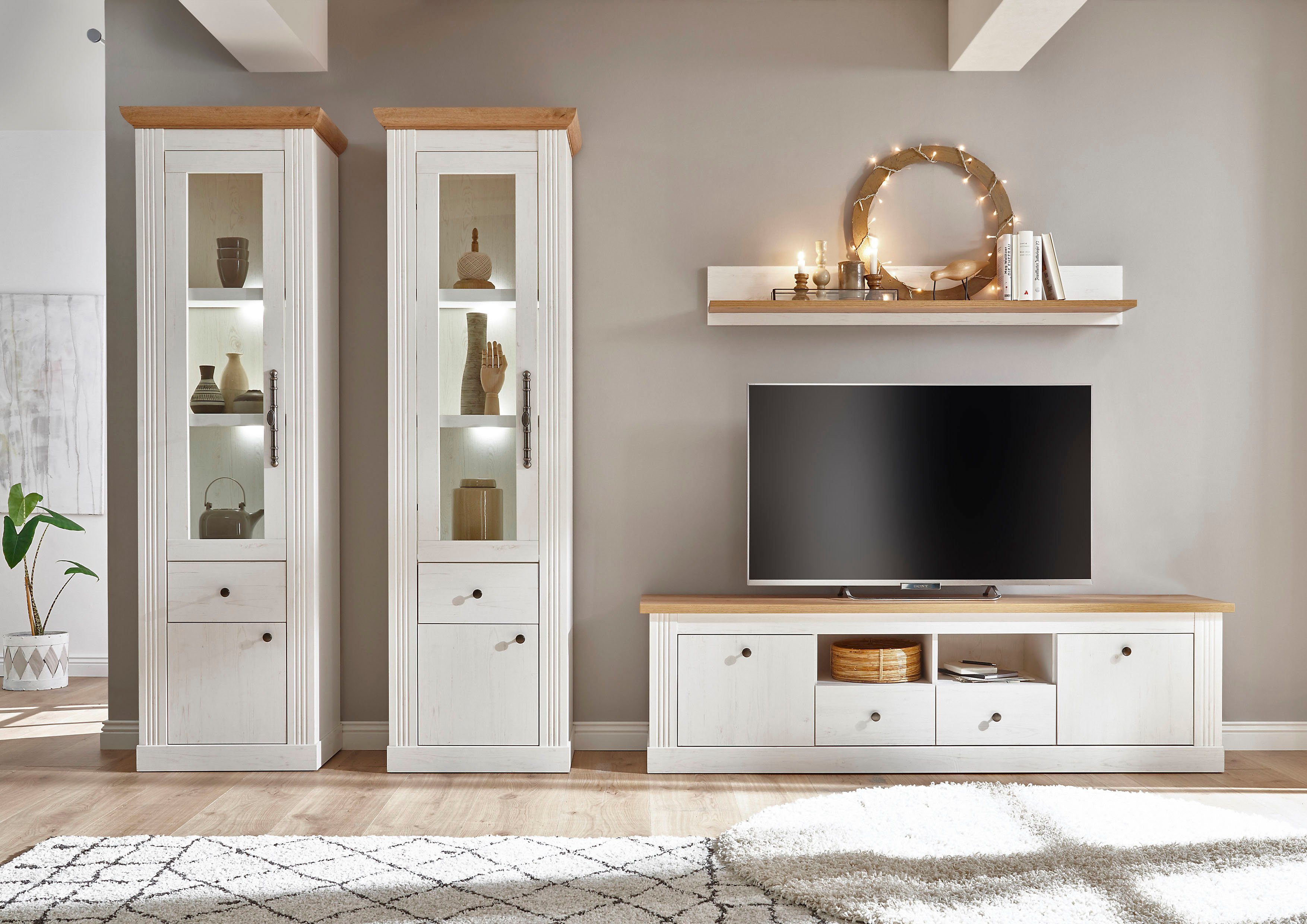 Wohnwand Set 4 St 1 Vitrine 1 Lowboard 1 Regal 1 Wandregal Online Kaufen Otto Wohnen Wohnwand Wohnzimmerwand