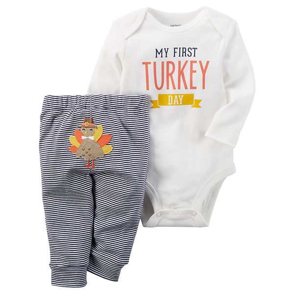 Baby Carter S My First Turkey Day Thanksgiving Bodysuit Turkey Applique Bottoms Set